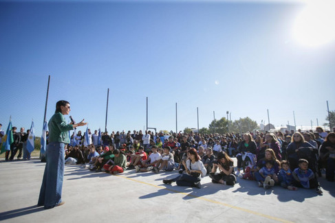 “Hoy estamos inaugurando y dejando abierto para la comunidad este Polideportivo, que la verdad que cuando pensamos el nombre no nos costó mucho y sabiendo que estábamos en Bernal Oeste y que todo lo hacemos de corazón, pero guiado por el ejemplo diario no solamente de cuando fue presidenta sino que hasta el día de hoy Cristina siempre pregunta por los vecinos de Quilmes, de Bernal Oeste y de cada barrio“, expresó Mayra.